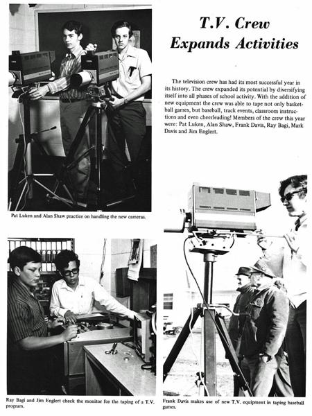 Paducah, Kentucky the early 1970s at St. Mary’s High School. The Christian Brothers established one of the first TV production facilities in a high school. Ampex cameras and Ampex one inch black and white video tape machines. Note the advanced linear video tape editor circled in red. We taped everything from sports to plays. I personally recorded cheer leader practice for the team competitions. We also time shifted educational programming from the Kentucky Educational Network. Well, the video bug had bitten and I was off to Loyola University Of The South after high school. |
